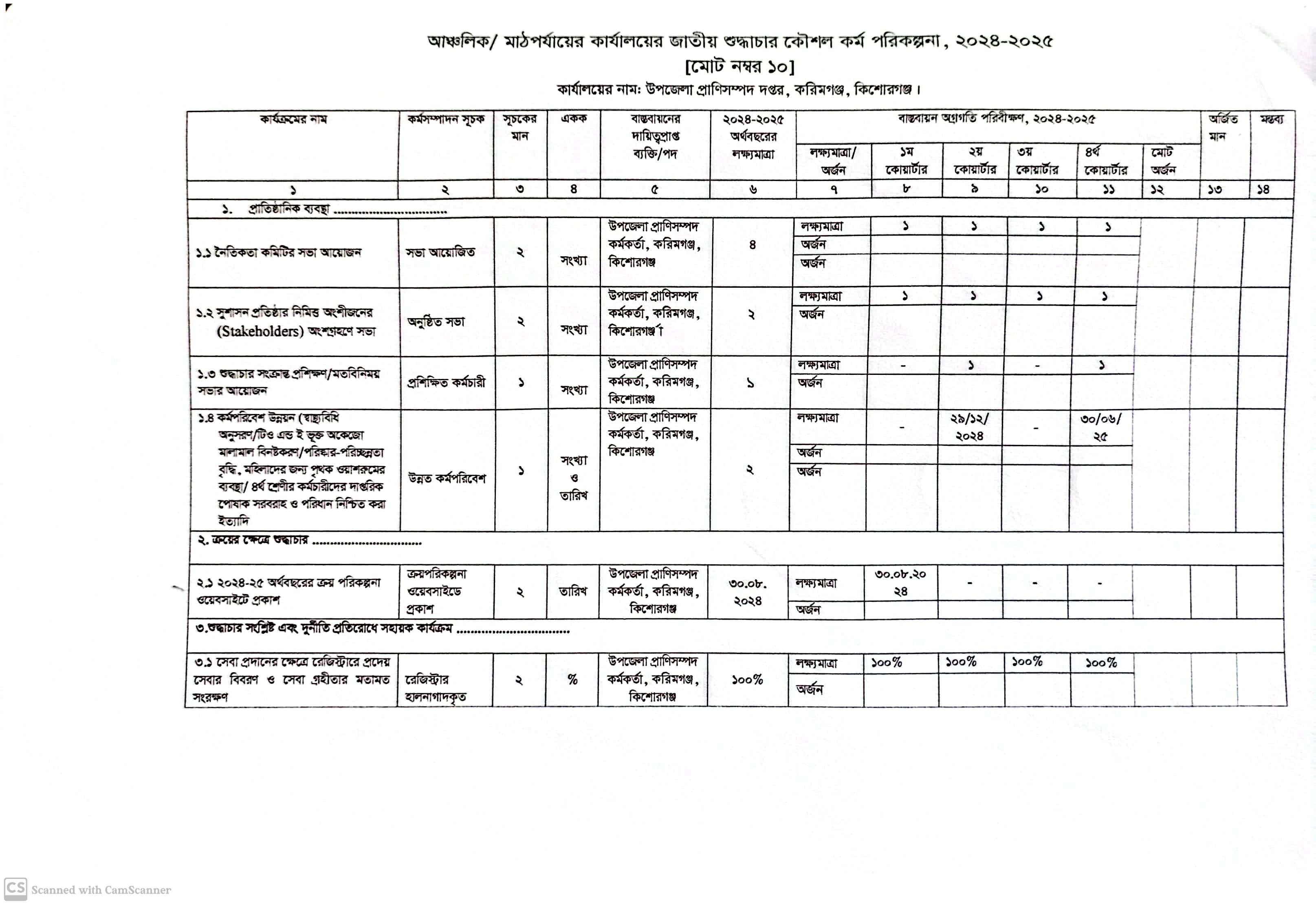 জাতীয় শুদ্ধাচার কৌশল কর্মপরিকল্পনা ২০২৪-২০২৫